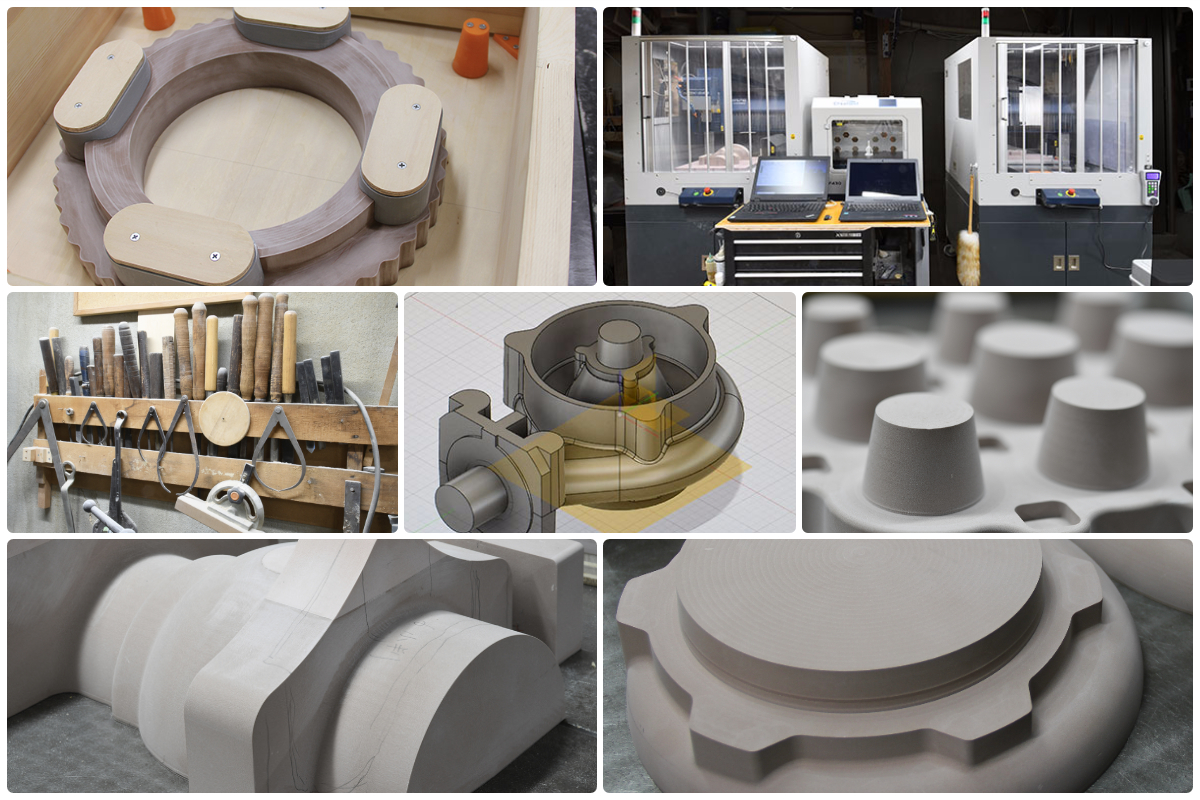 現在にいたっては従来の制作方法に加え、3Dプリンタやマシニングセンタ等の新しい技術を取り入れて木型を制作しており、納期の短縮化、精度の向上を実現しております。